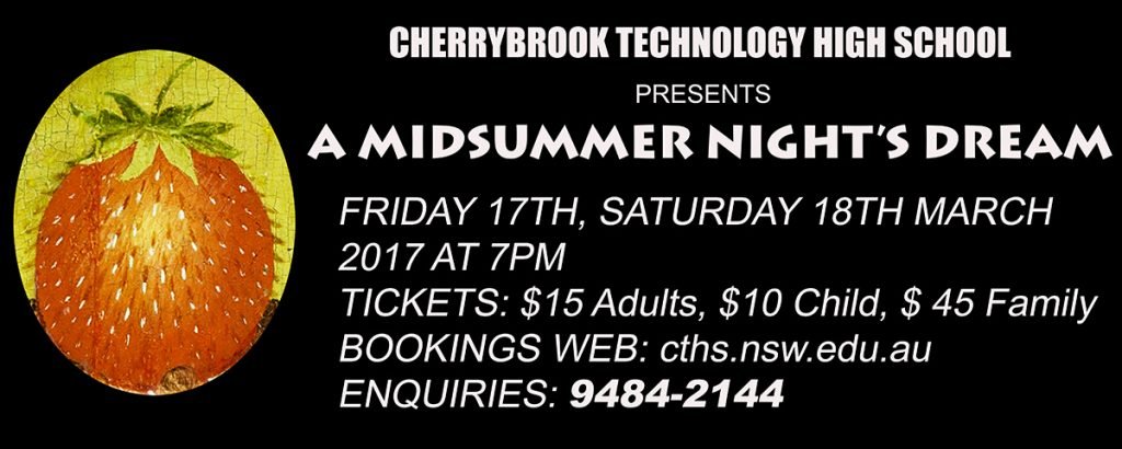 Cherrybrook Technology High School’s adaptation of William Shakespeare’s popular comedy, A Midsummer Night’s Dream, takes you into a moonlit forest inhabited by grotesque creatures, young lovers, and a few surprises.